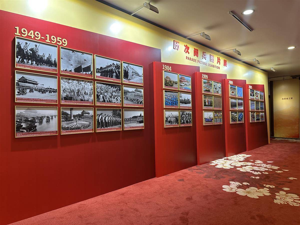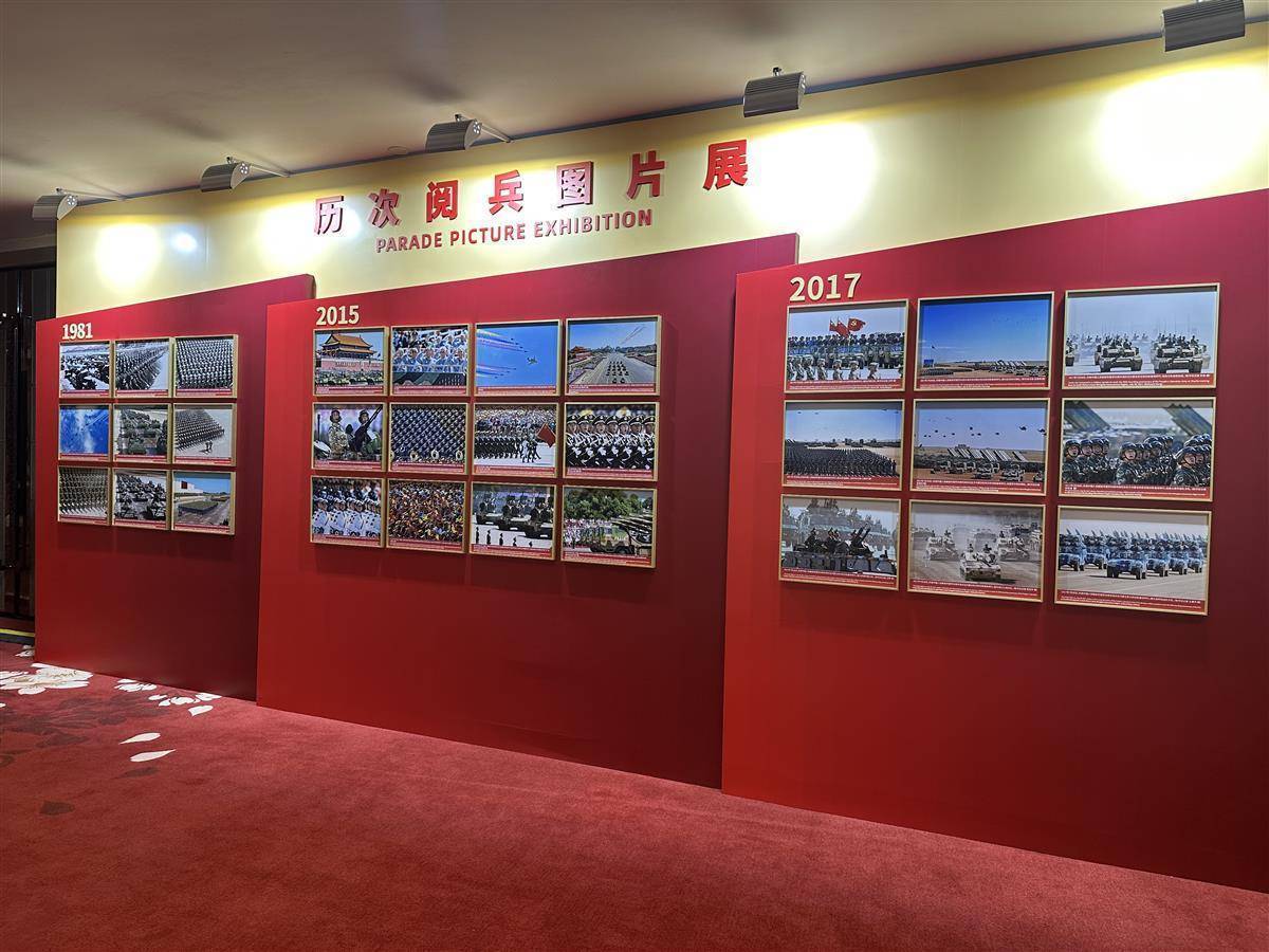 新闻中心二楼展出的新中国历次阅兵图片展,一张老照片吸引记者注意。1949年10月1日,开国大典阅兵式上,飞行编队飞过天安门上空。