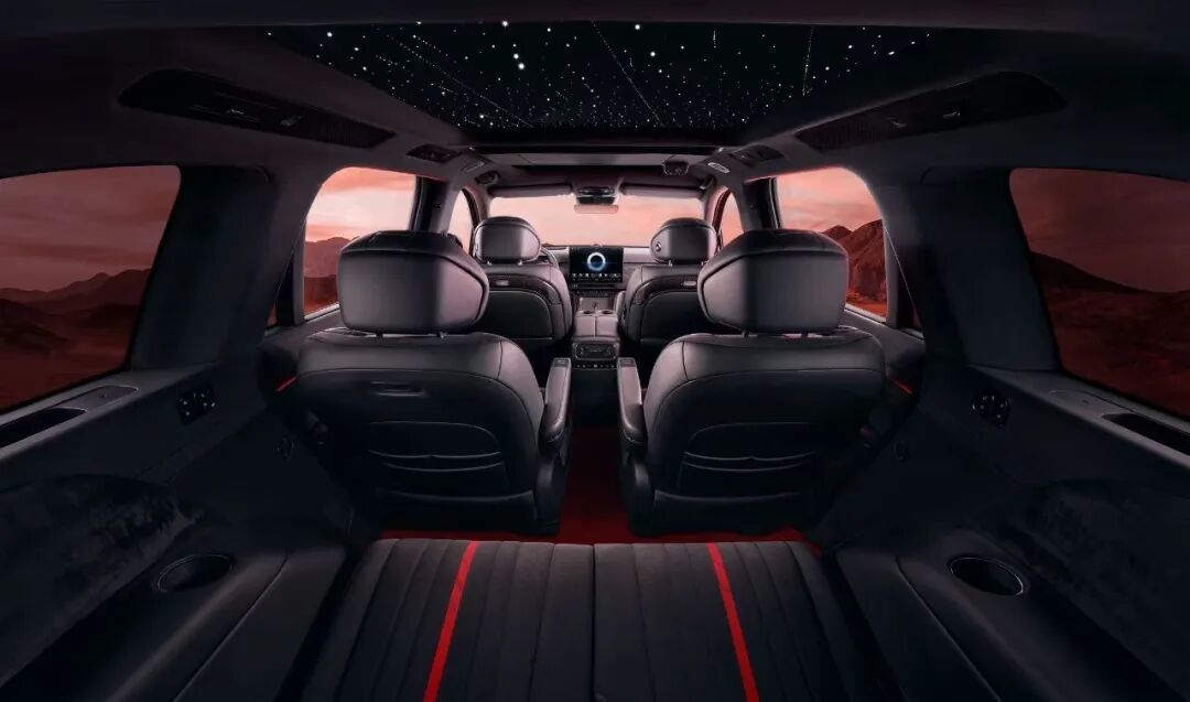 内饰部分,车型以大面积“丹墨”色系为底色,在座椅缝线、头枕等细节处加入“丹砂”红点缀;墨晶璀璨按键采用黑水晶材质与钻石切割工艺,流云墨韵饰板融入东方流云纹的光影设计,星河天幕星空顶配备598颗灯珠,打造出兼具东方意境与高端质感的座舱氛围。