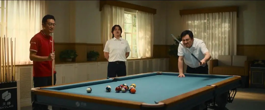 张驰和孙宇强与百强总见面时,又给他们安排了两场“商务球局”,先打乒乓球,再打台球。这两场戏把张驰和孙宇强两个人的丑态百出展现到极致,张驰明明球技比百强总更强,却要做出频繁让球的低姿态。